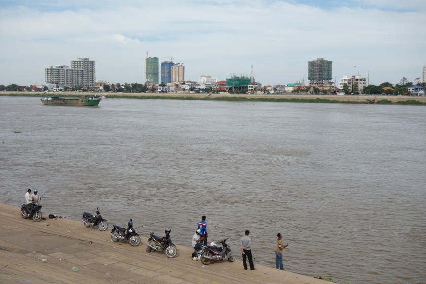 Dudes and their bikes fishing on the riverside