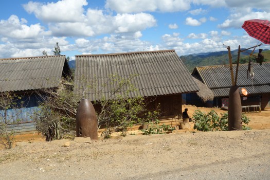 Previous Image Next Image dsc00822 En route to Vieng Xai, one of the heaviest bombed areas of Laos: Huge bomb casings being used as garden decorations