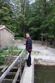 Previous Image Next Image DSC02093 Skocjan, Slovenia: Walking across a dam over a creek at our campsite, to the firepit.