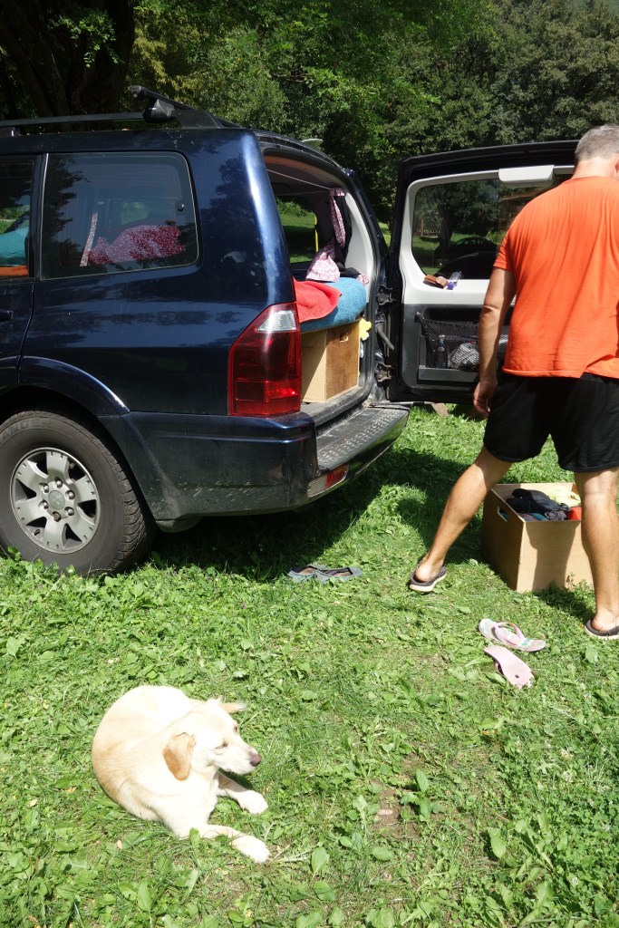 Puppy dog supervises