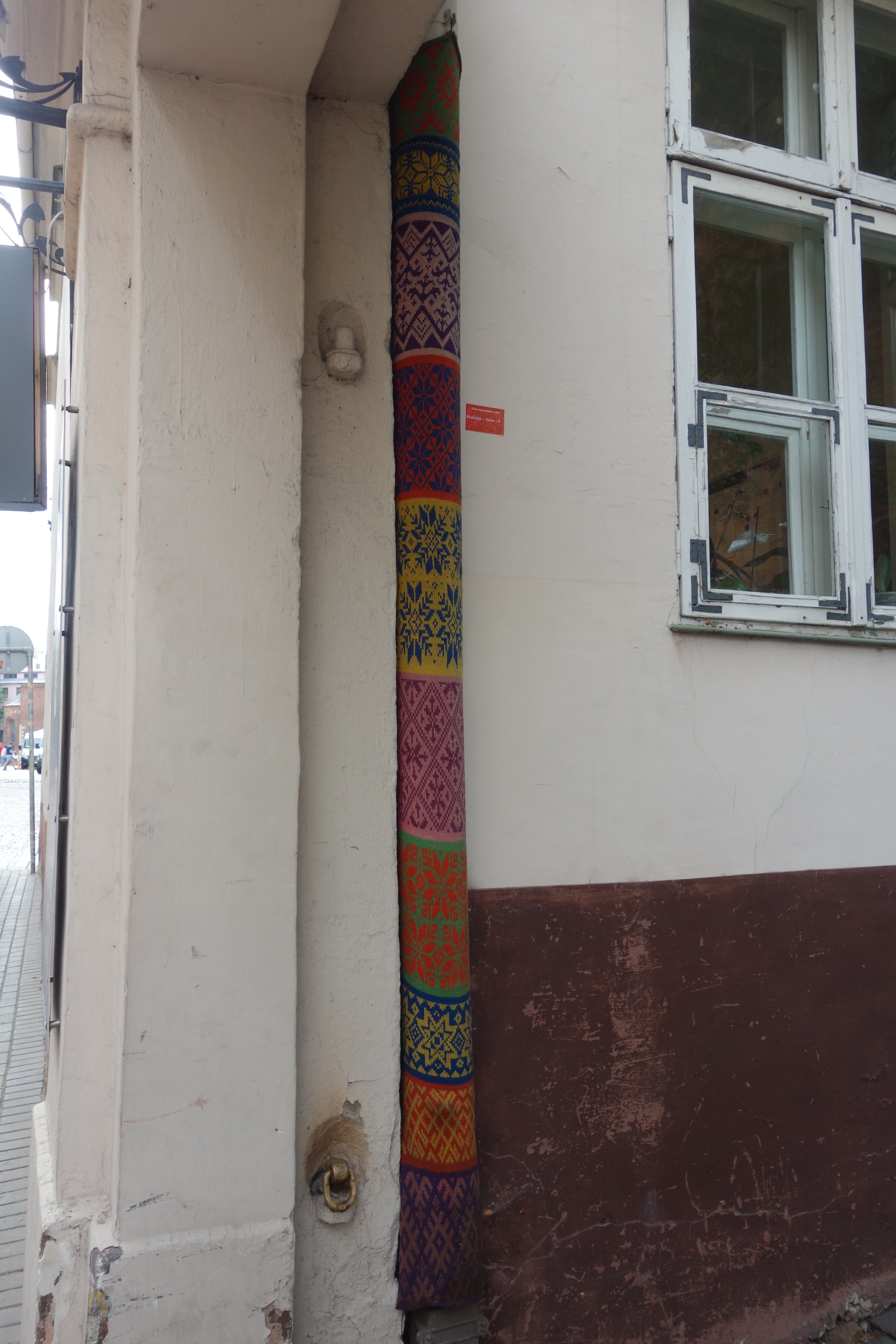And quirky! Someone knit-bombed this down-pipe!