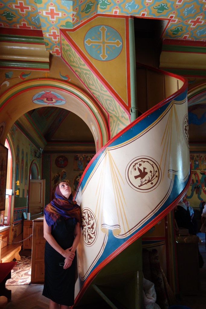 Previous Image Next Image DSC04363 Monasteries in Russia require woman to wear headscarves and skirts, and men to wear long pants.