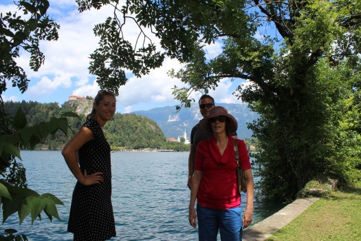 Before getting into our boat at Lake Bled