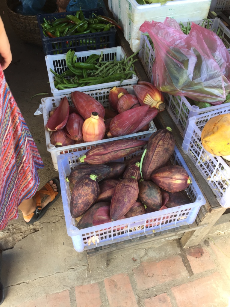 Banana flowers for sale in the market (to eat!)